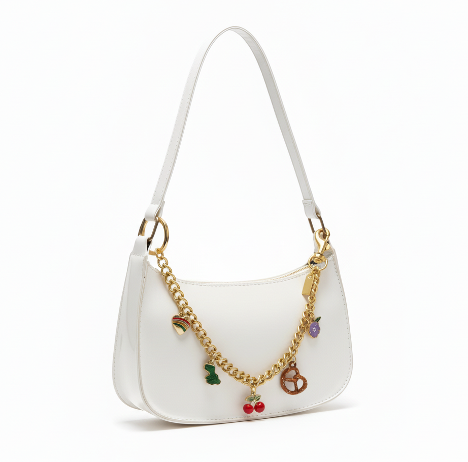 Crafted to elevate your handbag, these charm chains can be styled on the handle, side, or across the bag for a statement finish. A versatile accessory that adds charm, personality, and effortless elegance.